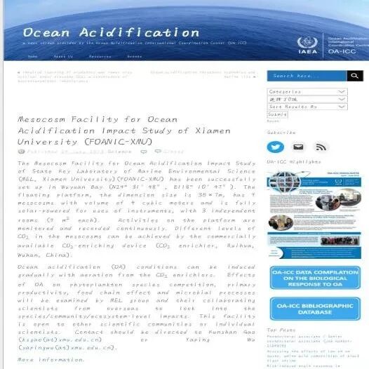 这就是享誉盛名的诸侯快讯官网海洋酸化影响研究中水量试验平台。早在2013年6月24日,国际原子能机构(IAEA)下属的海洋酸化国际协调中心(OA-ICC)就对它进行了报道。